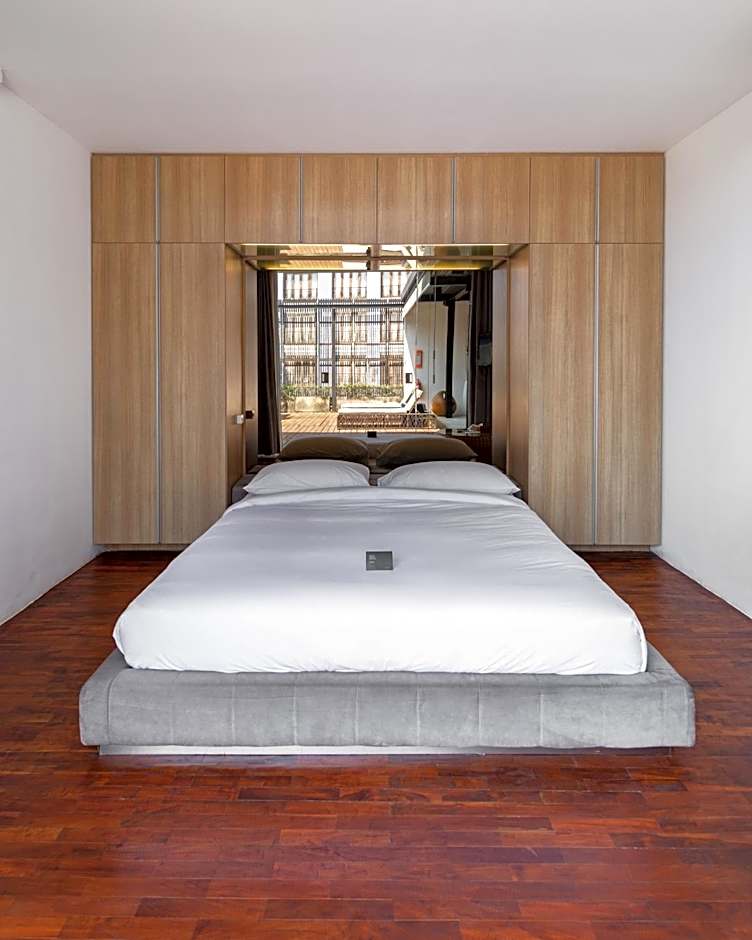 A modern, minimalist villa with a private entrance and private pool with a sundeck. The spacious kitchen comes with a stove, kitchenware and microwave oven. Large bathroom features a freestanding bathtub.